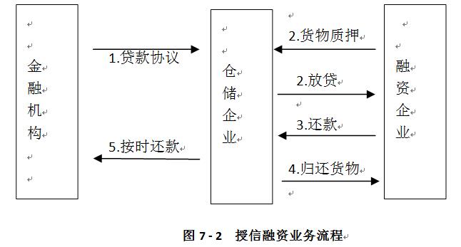 2.融資企業(yè)將質(zhì)押物放到金融倉儲(chǔ)公司制定的倉庫,由金融倉儲(chǔ)企業(yè)進(jìn)行監(jiān)管服務(wù),并與金融倉儲(chǔ)企業(yè)簽訂《借款協(xié)議》與《貨物質(zhì)押合作協(xié)議》。根據(jù)質(zhì)押物的價(jià)值按照一定的比例將資金貸給融資企業(yè)。